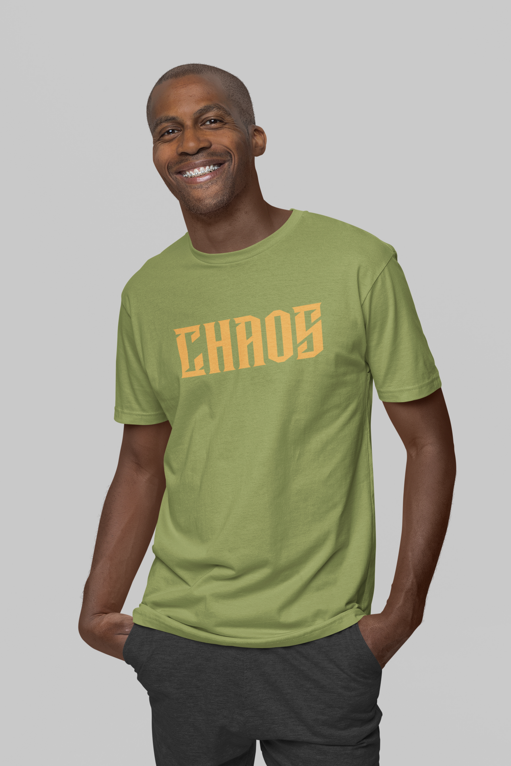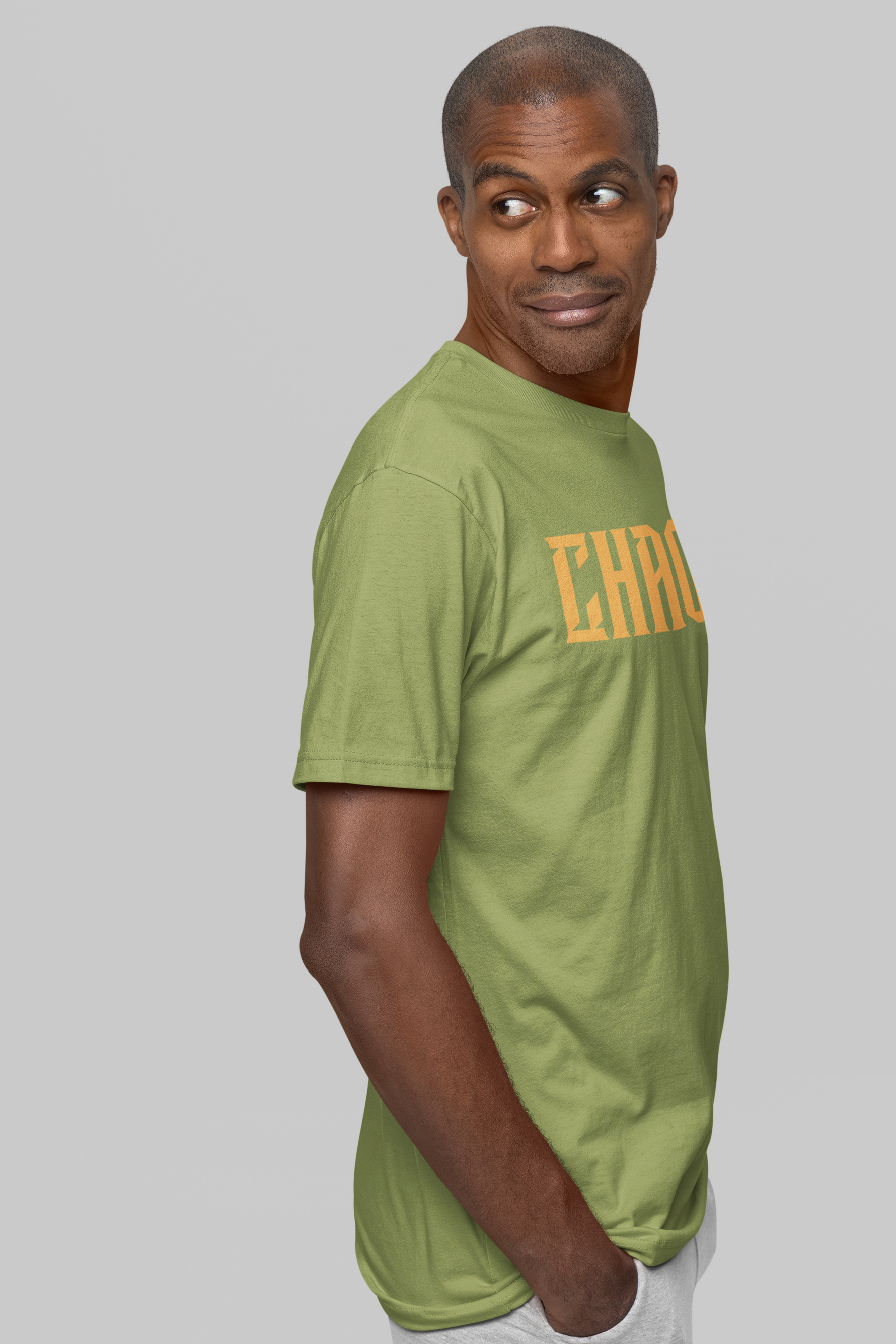Expertly crafted from soft cotton, these chaos olive-green regular T-shirts offer a comfortable and stylish addition to any wardrobe. The classic olive-green color adds a touch of no-nonsense sophistication, while the regular fit ensures a flattering, versatile look for any occasion. Made for enduring quality and effortless style.
