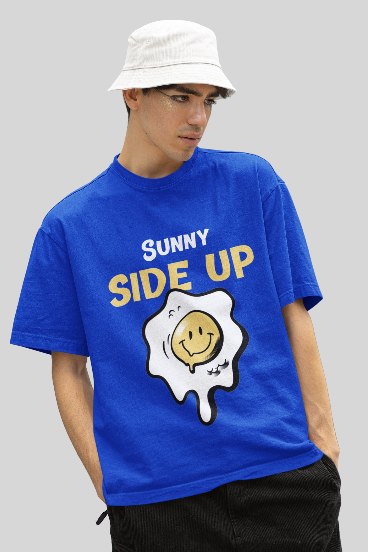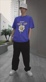 Introducing the Sunny Blue Oversized T-shirt for men. Made with a relaxed fit and comfortable fabric, this shirt is perfect for everyday wear. With its sunny blue color, it will add a pop of brightness to your wardrobe. Upgrade your style game with this versatile and trendy t-shirt.