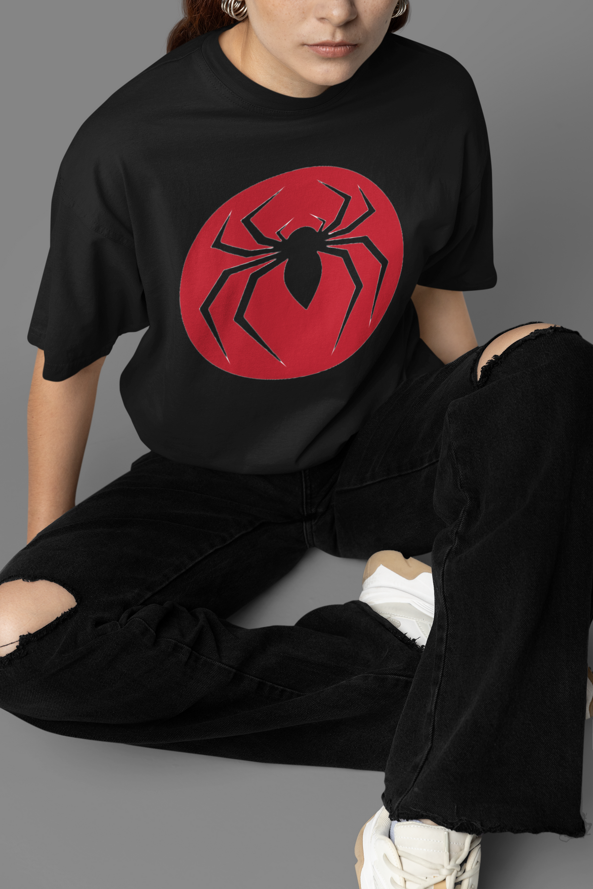 Embrace your bold side with our Spider Black Oversized T-Shirt, designed for women who love to stand out. Featuring a striking spider-inspired graphic, this black oversized tee is crafted for comfort and style. Made from premium breathable cotton, it ensures all-day comfort while keeping you effortlessly chic.